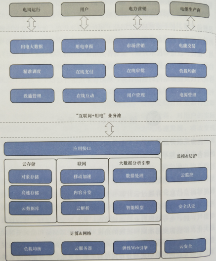 能源互聯(lián)網(wǎng)開(kāi)發(fā)平臺(tái)環(huán)境和架構(gòu)下,電力消費(fèi)生態(tài)體系將有效整合電源、智能控制和用戶側(cè)等系統(tǒng)要素,是支撐供給側(cè)改革及需求側(cè)響應(yīng)的重要支撐手段。其中,處于核心地位的是電網(wǎng)運(yùn)營(yíng)平臺(tái),作為能源生產(chǎn)、能源運(yùn)營(yíng)服務(wù)、設(shè)施設(shè)備服務(wù)、消費(fèi)者等用電生態(tài)中各個(gè)角色信息交互平臺(tái),將用電業(yè)務(wù)與互聯(lián)網(wǎng)的深度融合,并形成數(shù)據(jù)驅(qū)動(dòng)的業(yè)務(wù)模式,基本技術(shù)模式是構(gòu)建由計(jì)算資源、存儲(chǔ)資源、網(wǎng)絡(luò)資源、安全防護(hù)、大數(shù)據(jù)分析引擎和應(yīng)用接口組成的互聯(lián)網(wǎng)云應(yīng)用平臺(tái),將各種用電相關(guān)業(yè)務(wù)以應(yīng)用(App)的形式部署到基礎(chǔ)云平臺(tái),各種用電業(yè)務(wù)的互聯(lián)網(wǎng)應(yīng)用按照接口規(guī)范接入云平臺(tái),并利用平臺(tái)的各種基礎(chǔ)資源,尤其