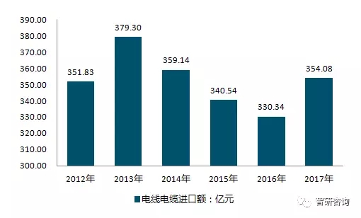 2012-2017年中國電線電纜行業(yè)進(jìn)口額情況