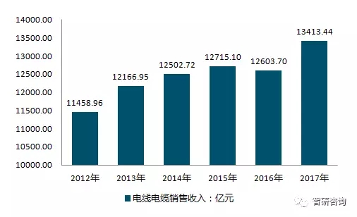 2012-2017年中國電線電纜行業(yè)銷售收入情況