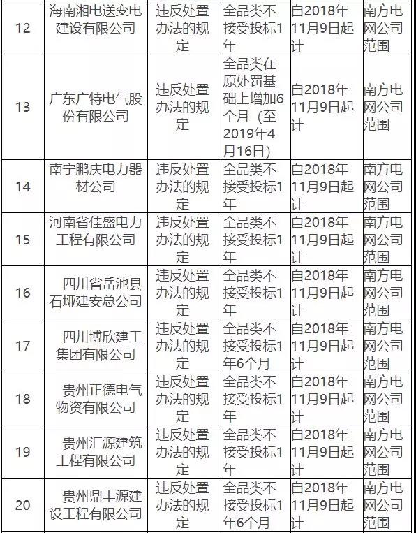 為促進(jìn)供貨商誠信履約,保證產(chǎn)品質(zhì)量,確保電網(wǎng)建設(shè)順利進(jìn)行及電網(wǎng)安全可靠運(yùn)行,依據(jù)《南方電網(wǎng)有限責(zé)任公司供貨商扣分處罰實施細(xì)則》、《南方電網(wǎng)公司供應(yīng)商行賄行為信息記錄及處置辦法》的有關(guān)規(guī)定,南方電網(wǎng)公司對近期出現(xiàn)產(chǎn)品質(zhì)量、履約、誠信等問題的供貨商進(jìn)行了處理。