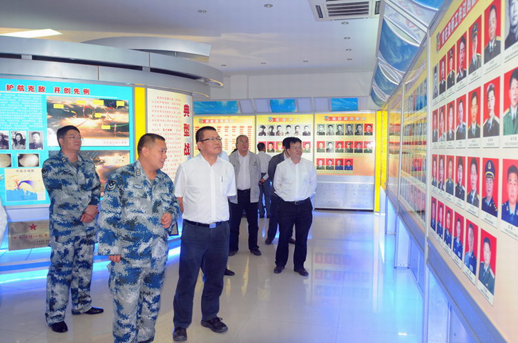 在空軍遂溪機(jī)場(chǎng)站遲彥偉站長(zhǎng)的陪同下,湛江局局長(zhǎng)陳曄一行參觀空二師師史展覽館。