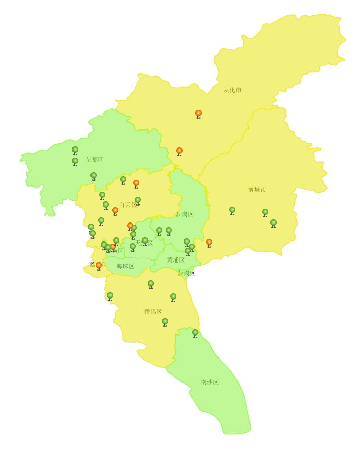電能質量監(jiān)測終端網絡對廣州電網359個電能質量監(jiān)測終端、44182個電壓質量監(jiān)測終端等進行實時監(jiān)測。圖為廣州電能監(jiān)測情況示意圖,綠色圖標代表電能質量好的監(jiān)測點。