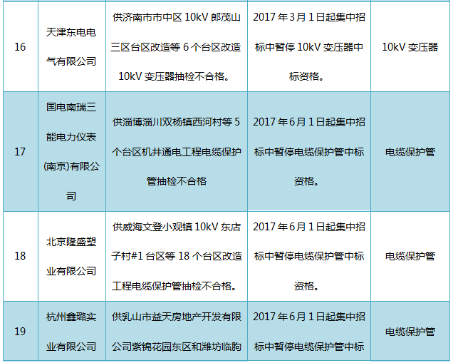 國網(wǎng)山東關(guān)于2017年第七批供應(yīng)商不良行為處理情況的公示(2017年10月)