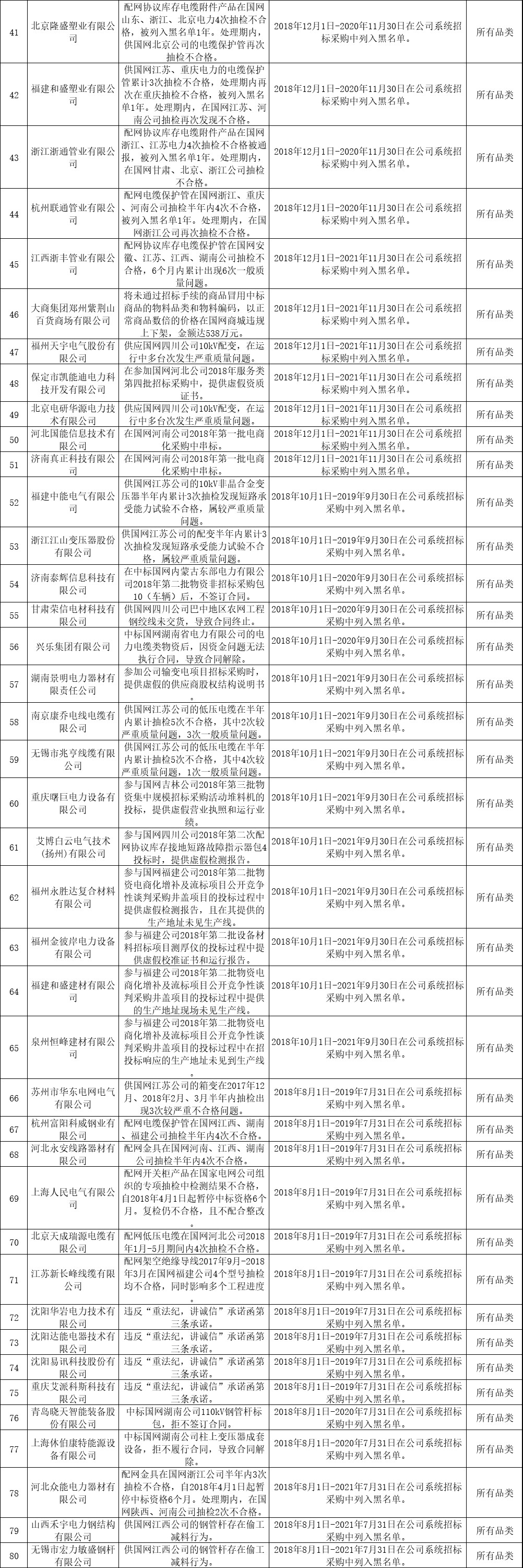 一、[國家電網(wǎng)公司] 關于供應商不良行為處理情況的通報(2018年12月)