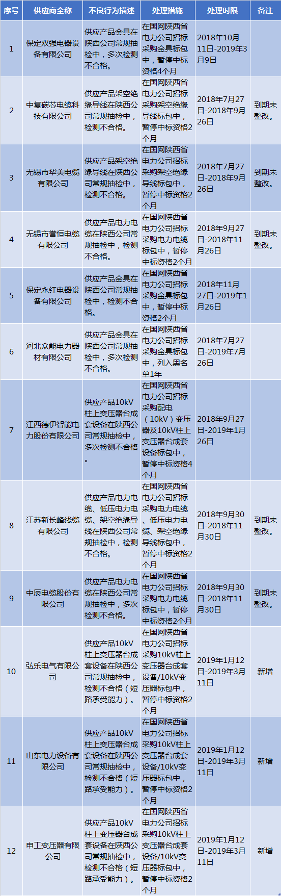 國網(wǎng)陜西2019年第一批供應(yīng)商不良行為處理結(jié)果