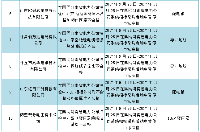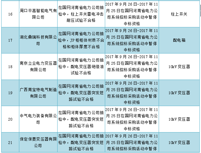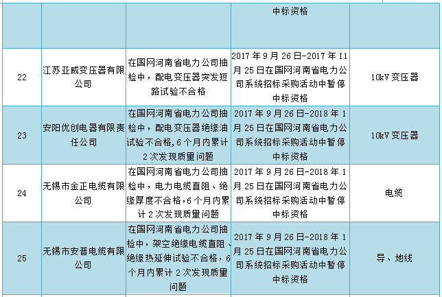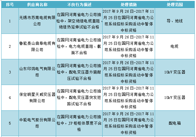 國(guó)網(wǎng)河南省電力公司2017年第三批供應(yīng)商不良行為處置通報(bào)