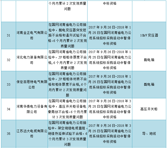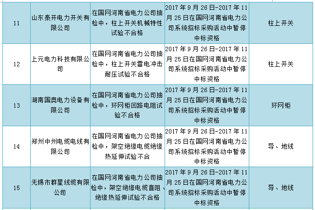 國(guó)網(wǎng)(河南)2017年第三批供應(yīng)商不良行為處置通報(bào)