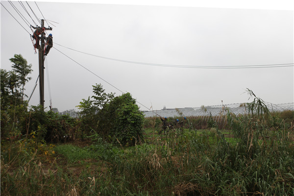 10月11日,江蘇張家港市供電公司施工人員在大新鎮(zhèn)施家村8組對10千伏周新線進(jìn)行農(nóng)網(wǎng)改造施工。