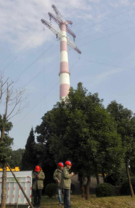 武漢供電公司運(yùn)維部副主任熊博介紹,該線路在武昌石咀與漢陽沌口間跨越長(zhǎng)江。由兩座特高鋼筋混凝土塔架起輸電線路跨越長(zhǎng)江,長(zhǎng)江南岸高塔位于武昌石咀江堤外,長(zhǎng)江北岸高塔位于沌口紙廠江堤內(nèi)。兩塔架起6根輸電導(dǎo)線和2根架空地線,6根無接頭跨江輸電導(dǎo)線。該線路是中國(guó)第一條跨越長(zhǎng)江天塹的高壓輸電工程。目前,該跨江線已完成歷史使命,經(jīng)檢測(cè)后獲準(zhǔn)拆除。