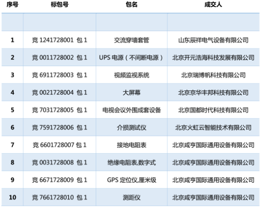 國網(wǎng)北京2017年第十批物資競爭性談判成交結(jié)果公告