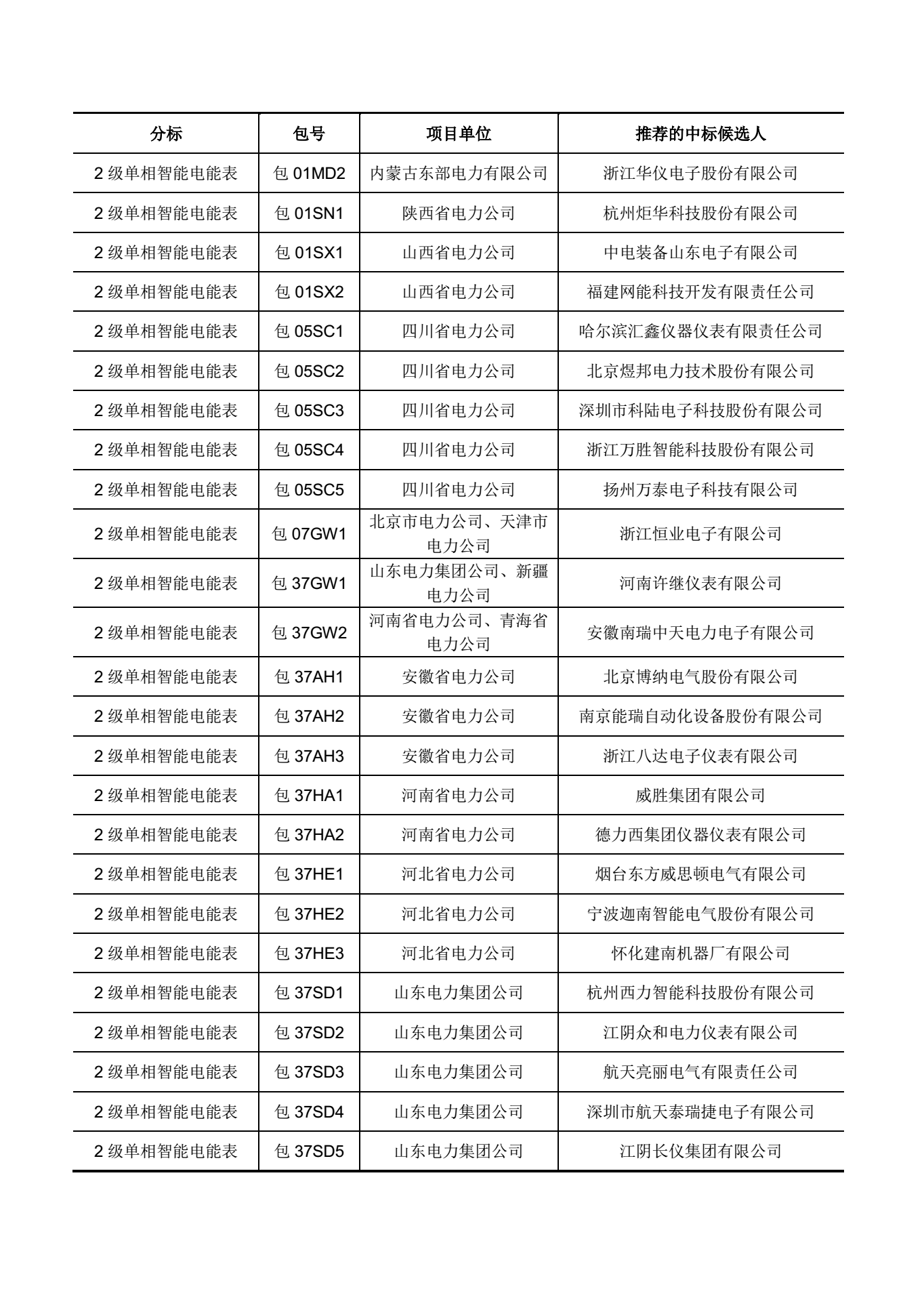國家電網(wǎng)公司2017年第二次電能表及用電信息采集設(shè)備招標(biāo)中標(biāo)情況