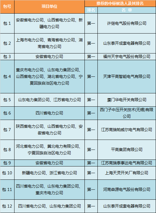 2017年國(guó)網(wǎng)第六次變電設(shè)備—35(20)kV開關(guān)柜中標(biāo)侯選人名
