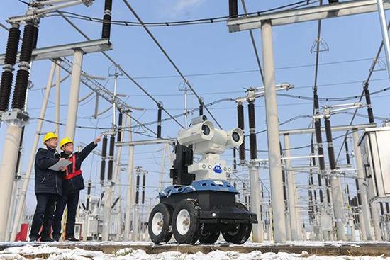 國(guó)家電網(wǎng)在安徽使用電力檢修機(jī)器人(《中國(guó)日?qǐng)?bào)》圖)