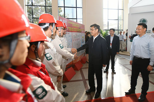5月9日下午,舒印彪一行檢查了首屆中國自主品牌博覽會(huì)國家電網(wǎng)展區(qū),并聽取了國網(wǎng)上海市電力公司關(guān)于本屆展會(huì)和中國品牌發(fā)展國際論壇的保電工作匯報(bào)。在講解員的引導(dǎo)下,舒印彪一行參觀了國家電網(wǎng)展區(qū),對(duì)展示手段、展示內(nèi)容、展品布置給予充分肯定。舒印彪還詳細(xì)聽取了國網(wǎng)上海電力從電源接入、人員安排、應(yīng)急保障等方面對(duì)保電工作所做匯報(bào),并慰問保電工作人員,感謝他們的辛勤付出。