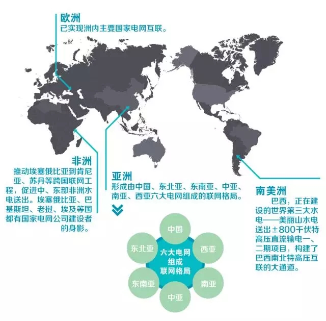 在亞洲,形成由中國、東北亞、東南亞、中亞、南亞、西亞六大電網(wǎng)組成的聯(lián)網(wǎng)格局。
